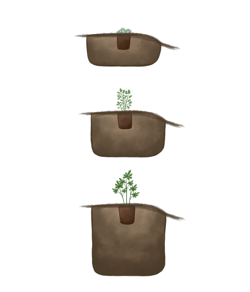 Entiseen kasvusyvyyteen siten, että juuripaakku peittyy ohuella multakerroksella.